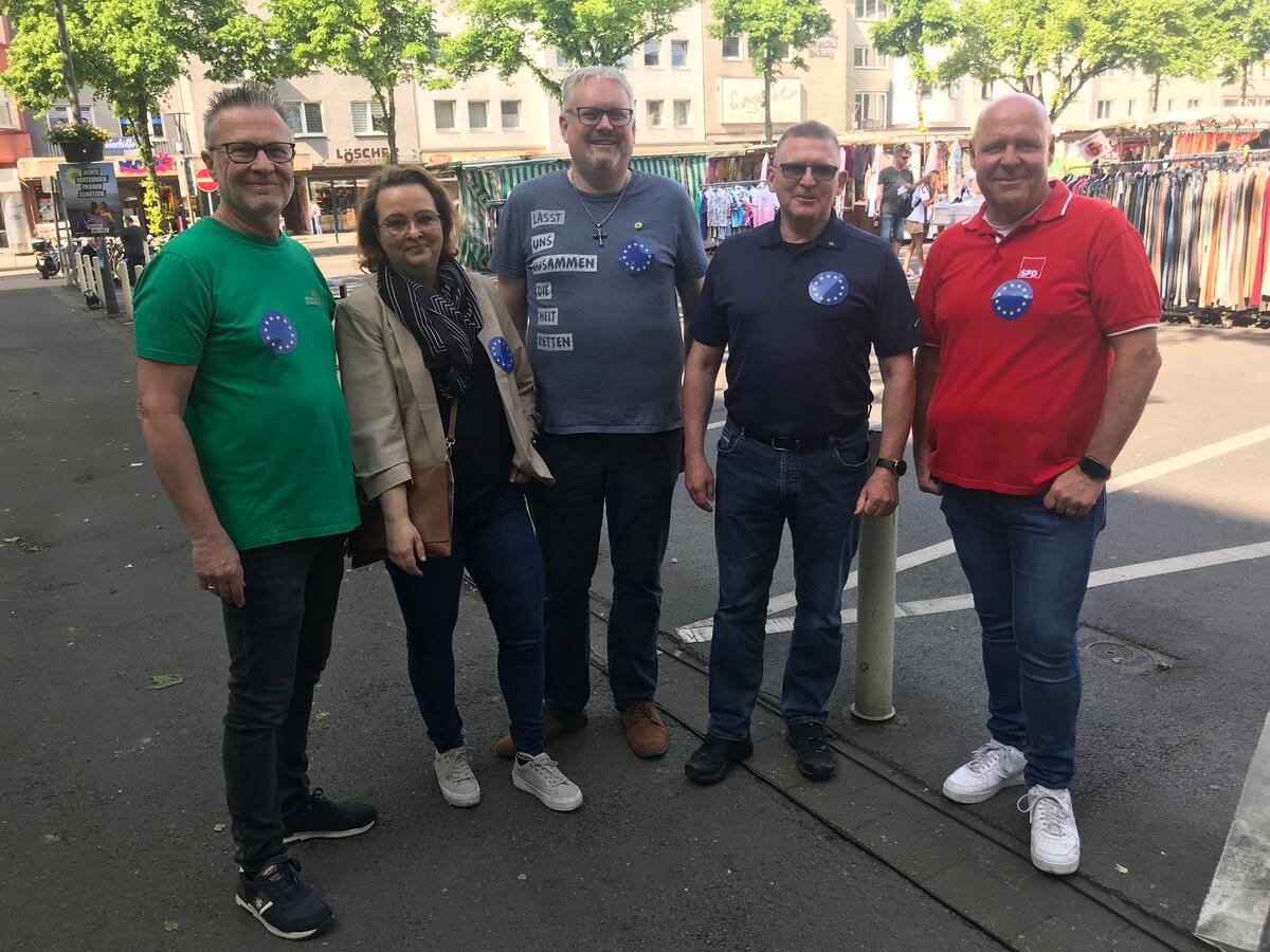Gemeinsamer Infostand von SPD, B90/DieGrünen und CDU zur Europawahl am Mengeder Markt am 11. Mai 2024